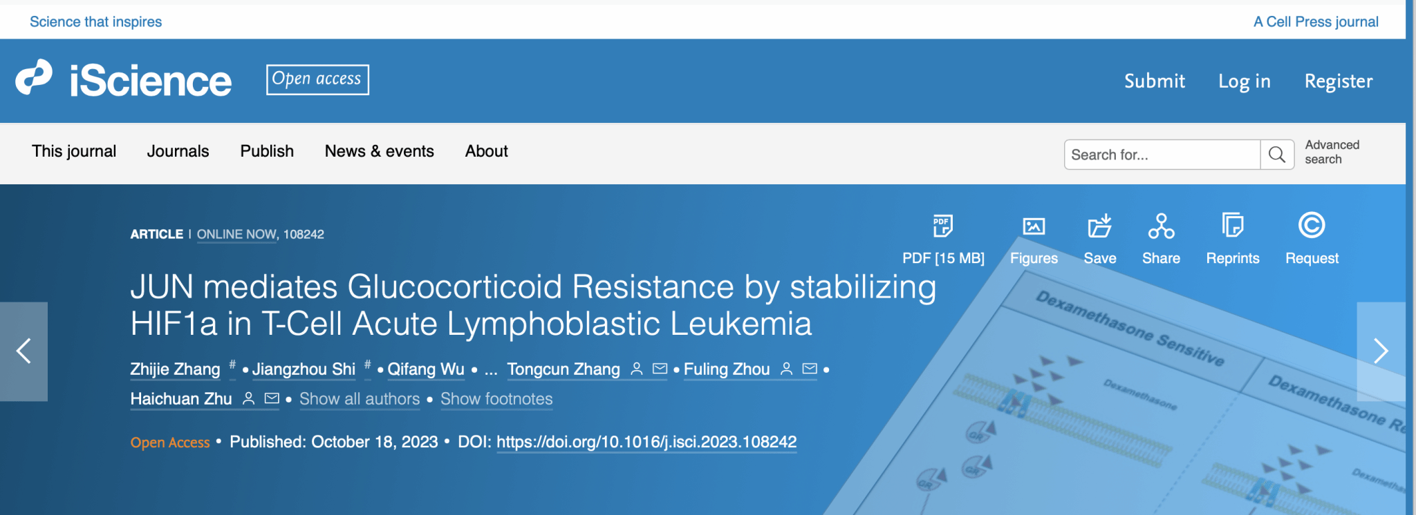 武科大网讯 10月18日,我校琉璃神社 祝海川、张同存课题组联合武汉大学中南医院血液科周芙玲教授课题组合作在Cell综合性子刊iScience上发表题为“JUN mediates Glucocorticoid Resistance by stabilizing HIF1A in T-Cell Acute Lymphoblastic Leukemia”的研究性论文。
